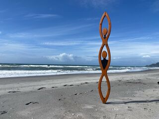 This sculpture is made with Treated NZ Pine coated in an exterior oil and is handmade to order